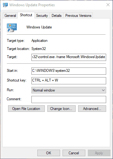 - Click in the Shortcut key box > hit the W key. That will add a Ctrl + Alt + W hotkey to the shortcut.