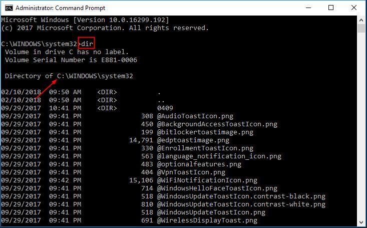 - Click Command Prompt and run dir command to check on which drive the system is installed on. (If you are already aware of this then skip the step)