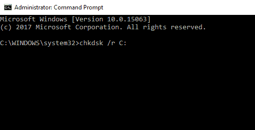 - As the Command Prompt opens > type chkdsk /r C: > hit Enter