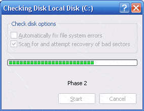 • Now choose Scan for and attempt recovery of bad sectors and Automatically fix file system errors.