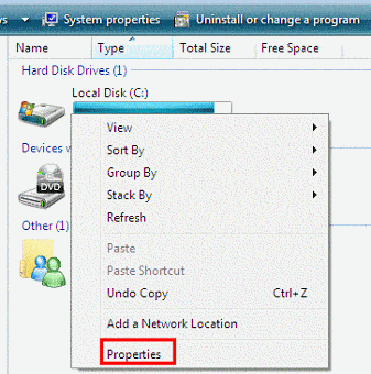 1. Open My Computer > then highlight local hard drive by clicking once on it.