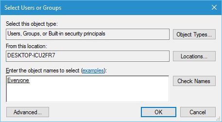 4. In Enter the object names to select enter Everyone > click Check Names > click OK.