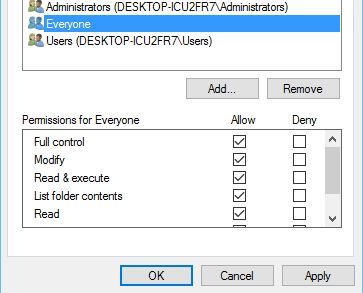 • From the Group or user names section > select Everyone > check Full control in Allow column > click Apply >  OK for saving the changes.